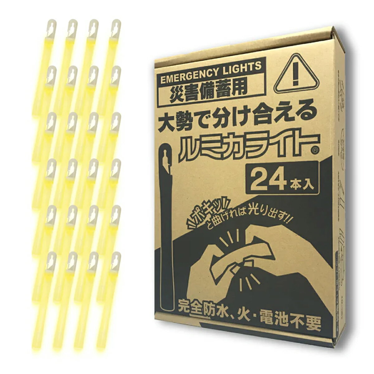 災害備蓄用 ルミカライト 簡易ライト 24本入り 【 防災用品 災害 備蓄 簡易 使い捨て 使い捨てライト ライト 照明 電池不要 防災 台風 水中 】