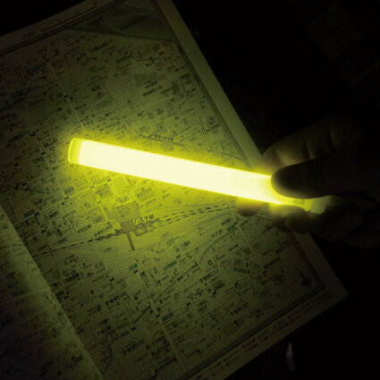 ルミカライト 防災用簡易ライト1本 パキッと折るだけで発光 パキッと折ると発光が始まり、約10〜12時間光り続けます。 火も電池も使わないので安全でカンタン、いつでも誰でもお使いいただけます。 災害時、ライフラインが止まって一番最初に必要となるもの。それは「明かり」です。 この災害用簡易ライトは、火や電気は必要としないので、ガス漏れの心配がある場所でも安心してお使いいただけます。もしもの時もあなたの足元を明るく灯してくれるでしょう。 ※使用推奨期限は製造日より6年になります。 ※使用推奨期限を過ぎる前に買い換えて下さい。 ※高温・多湿・直射日光を避けて保管して下さい。 ※車の中には保管しないでください。 概要 サイズ 約 直径14〜18 × 190mm 発光色 イエロー 発光時間 10〜12時間 内容 発光体1本(フック一体型)