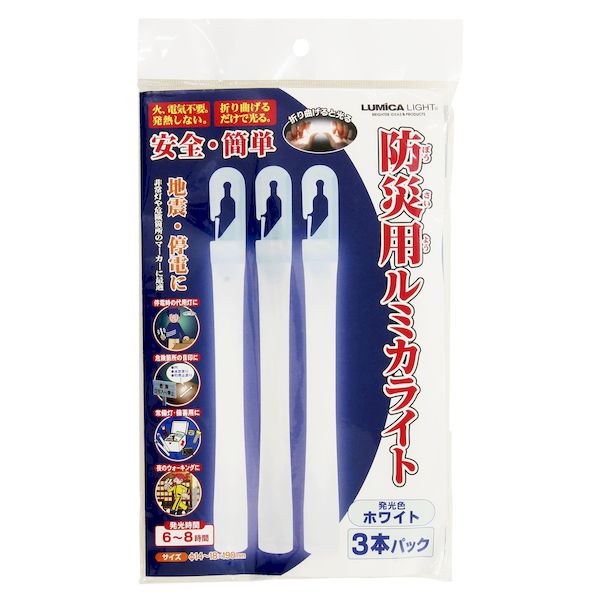 ルミカ LUMICA 4967574594983 防災用ルミカライト ホワイト 6〜8H発光 190mm E75311 3入