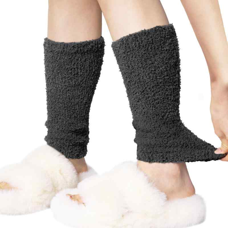 日本製 遠赤外線放射素材 裏起毛レッグウォーマー もこもこソックス ロング丈 フットカバー ロングカバー 冷えとり冷え取り靴下 ソックス 就寝 冷え性 グッズ フットウォーマー グレー EL03