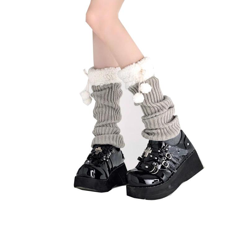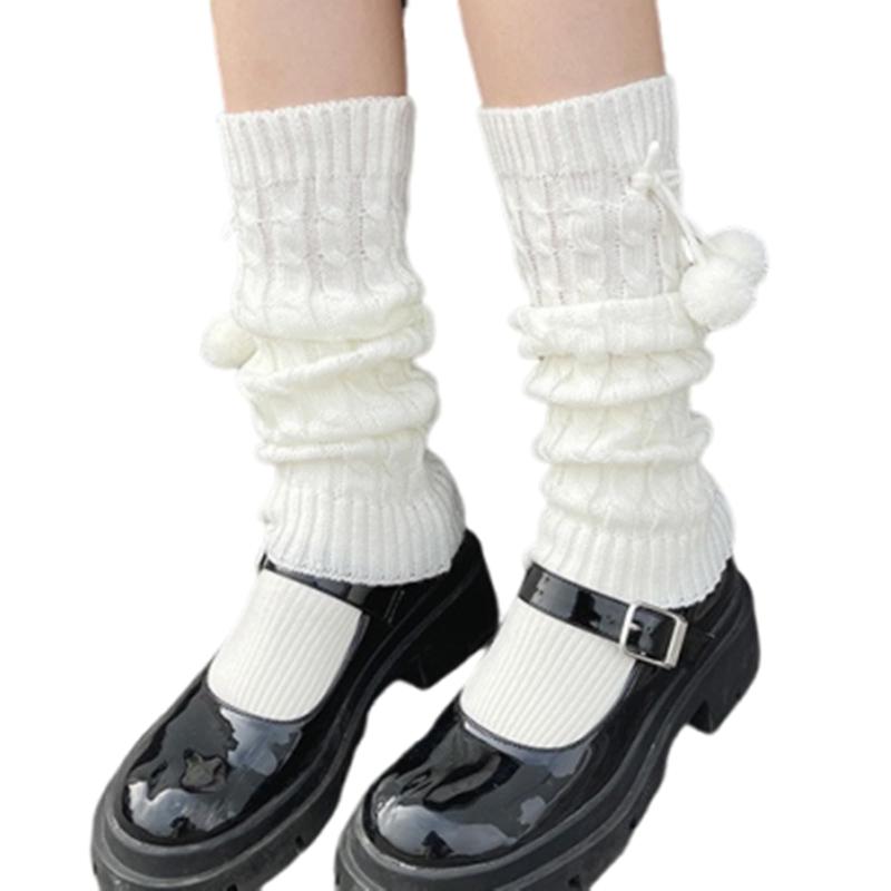 [Lamerry] レッグウォーマー 白 ルーズソックス ポンポン 地雷系 サブカル ギャル y2k 靴下 可愛い ルーズ モコモコ ニット レディース
