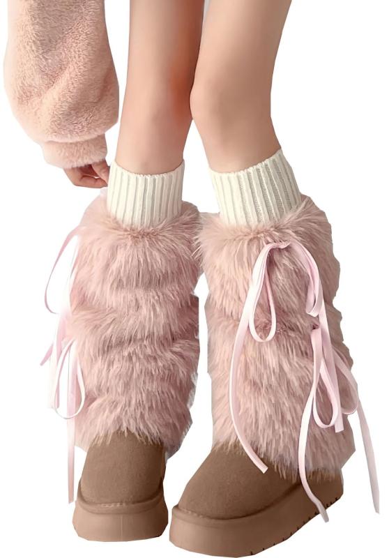 [WISHOW] レッグウォーマー 足首ウォーマー レッグウォーマー ふわふわ 暖かい 防寒 靴下 レディース フェイクファー 長靴 ルーズソックス 冷え対策 厚手 可愛い モダン レトロ