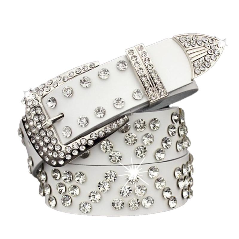 [FleurUneffe] 【j25】 ベルト ゴルフ PUレザー レディース 白 赤 黒 合革 白 ラインストーン キラキラ スタッズ パンク クリスタル 調整可能 ジーンズ ゴルフウェア【j25】