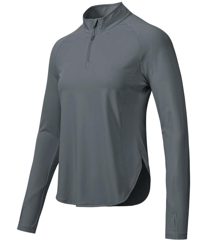 [Gopune] レディース ハーフジップ スポーツ 長袖シャツ ゴルフウェア 吸汗速乾 登山服 uvカット テニスウェア トレッキングシャツ カットソー 指穴付き 春秋用