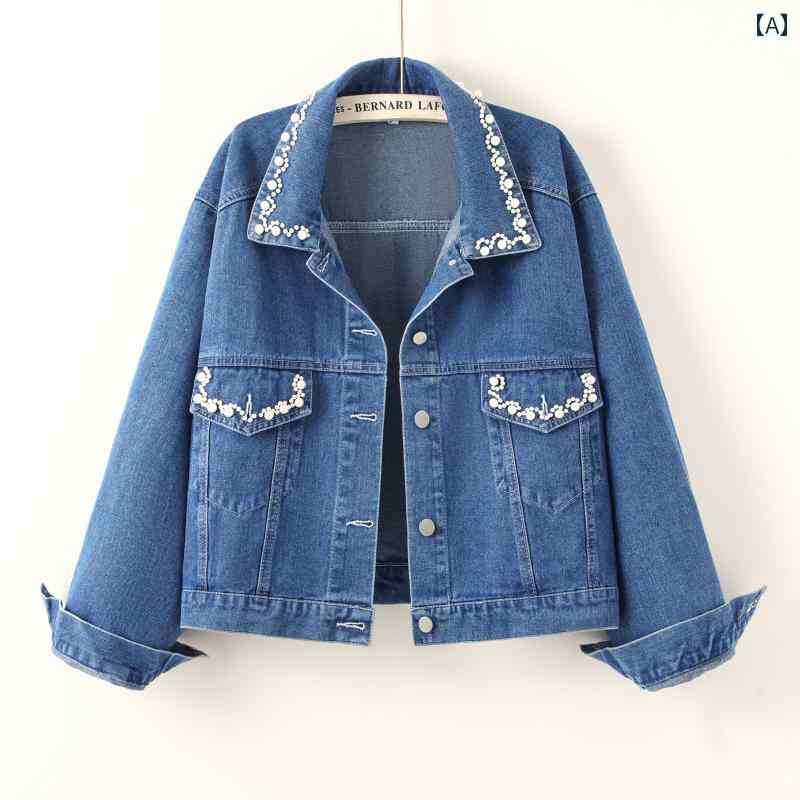 韓国スタイル ファッション エレガント ミニマル ショート丈 レディース デニムジャケット 春秋 ビーズ装飾 カジュアル 大人カジュアル
