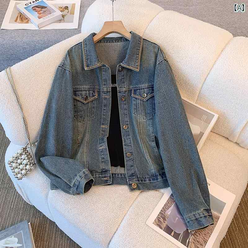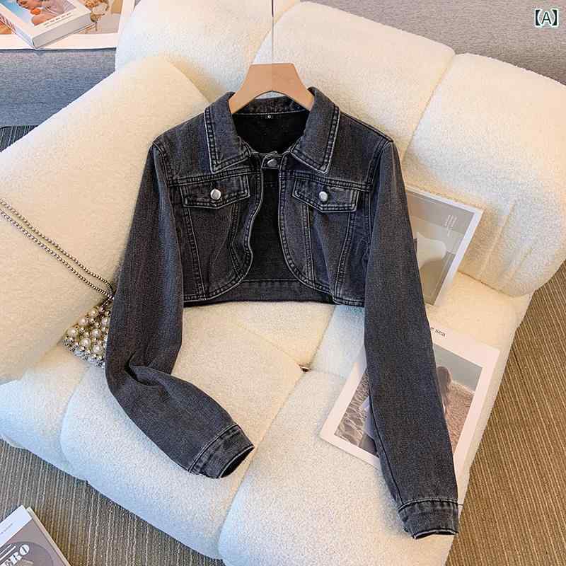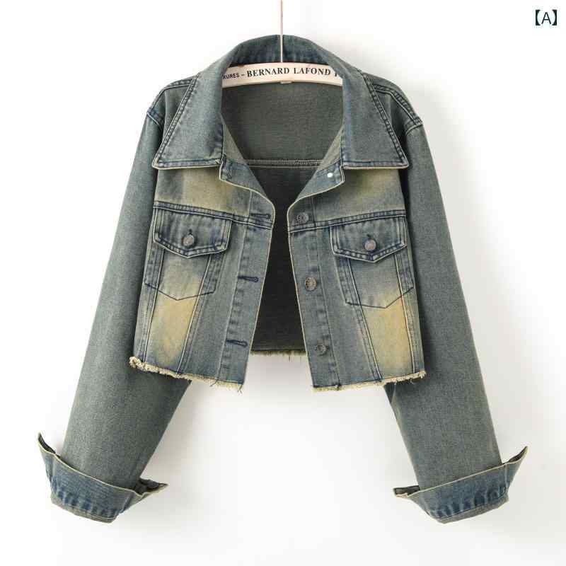 オフィス ショート レディース デニムジャケット おしゃれ かわいい レトロ 春秋 長袖 ヴィンテージ 小柄 カジュアル 韓国
