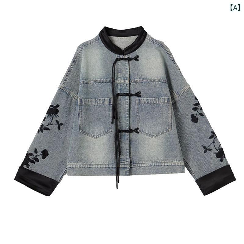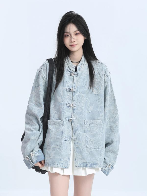 ジャケット 秋冬 レディース デニムジャケット ジャカード デザイン ディスクボタン ファッション チャイナ風