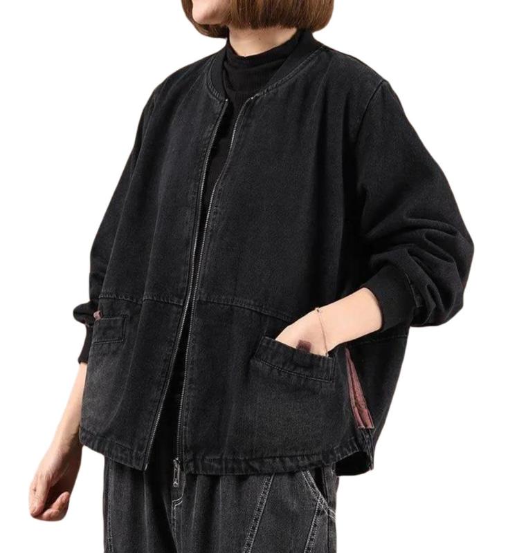 ジャケット レディース デニムジャケット 立襟 韓国 ファッション カジュアル 羽織り アウター 綿 ブラック