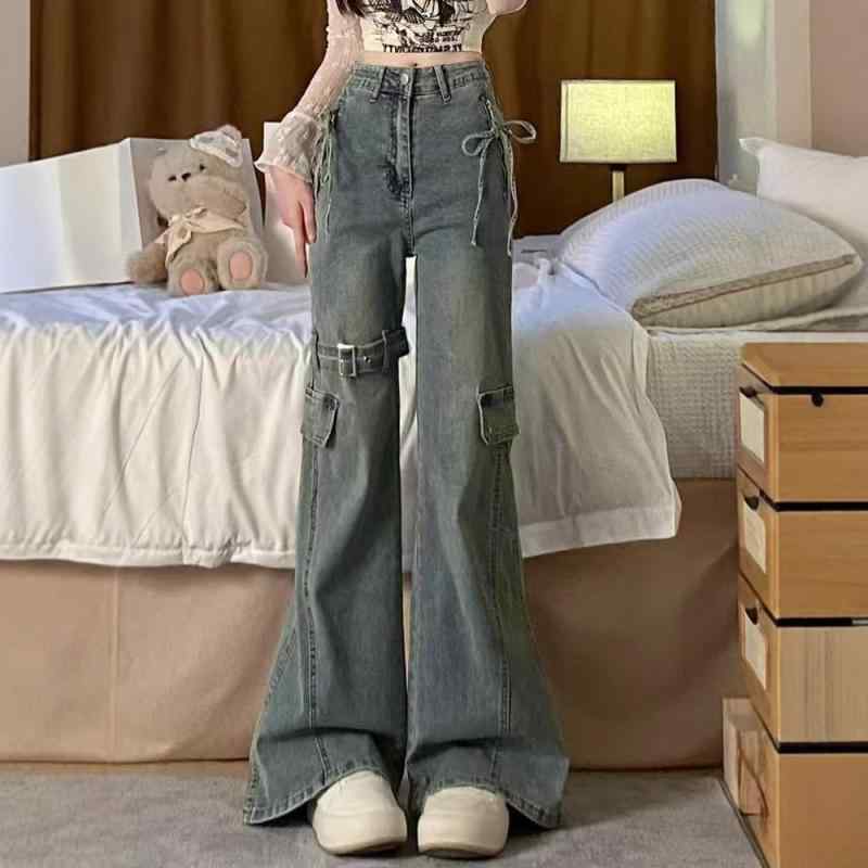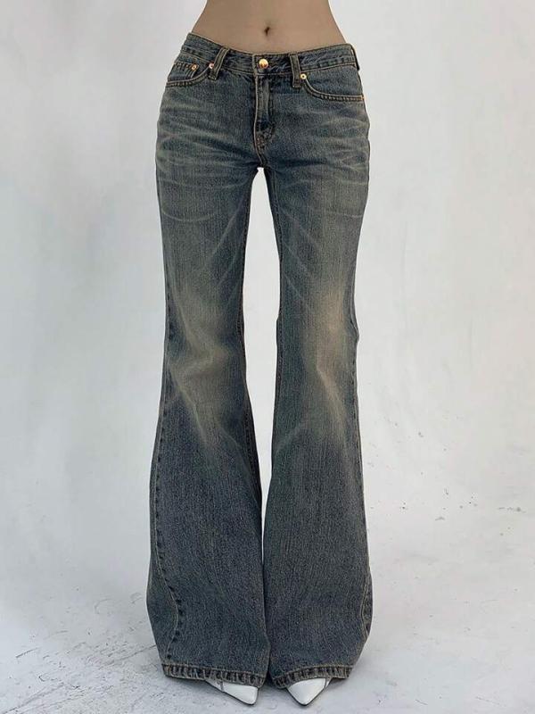 ジーンズ レディース ローライズ ブーツカット デニムパンツ ウォッシュ加工 ゆったり ジーパン ズボン 長ズボン ジーパン 古着風