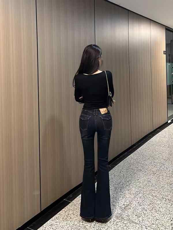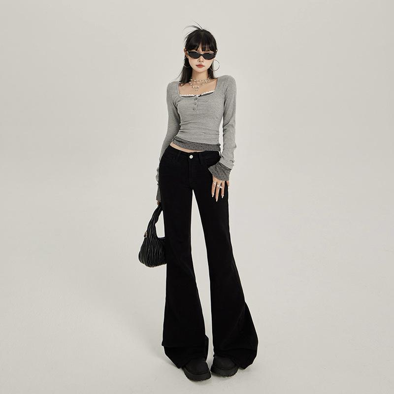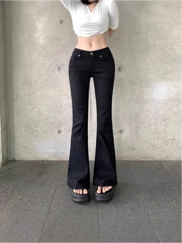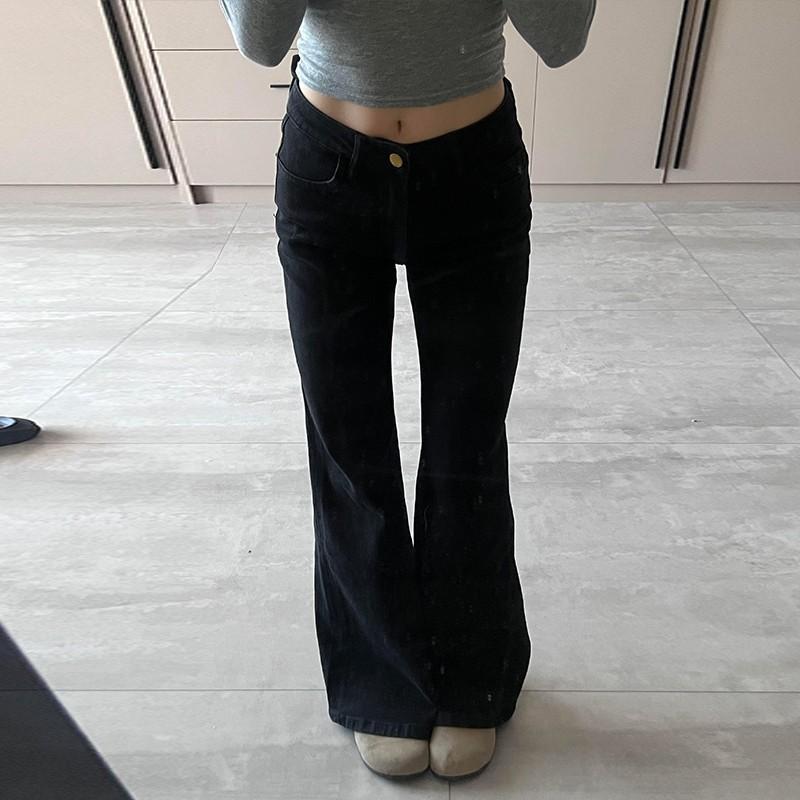デニム レディース ローライズ ブーツカット ジーンズ 黒 白 美脚 脚長効果 文艺 复古 ストレッチ ジーパン ズボン 80年代 90年代 リバイバル