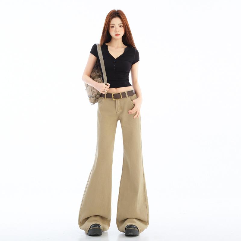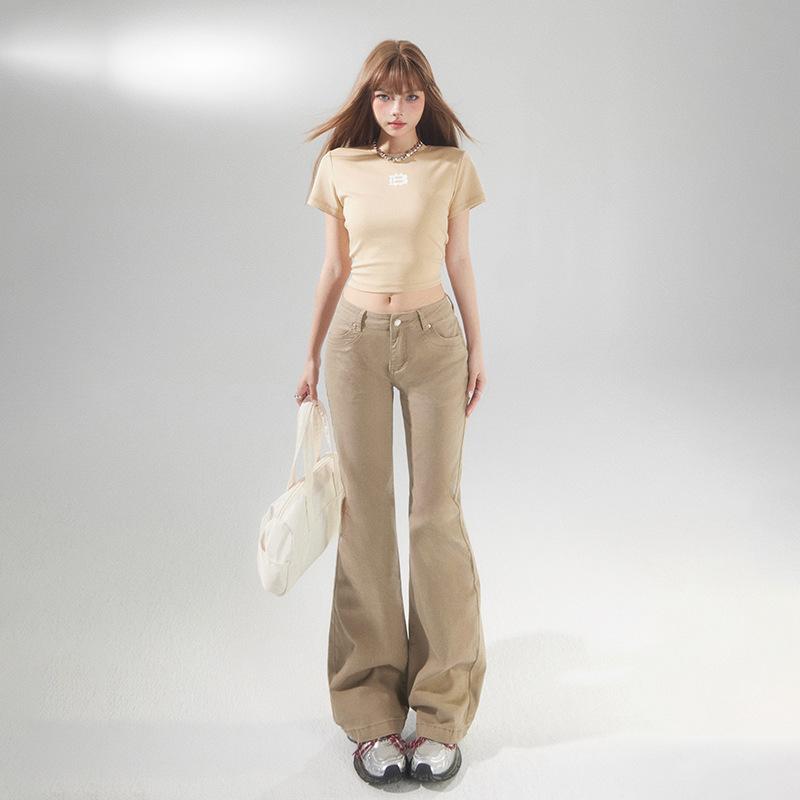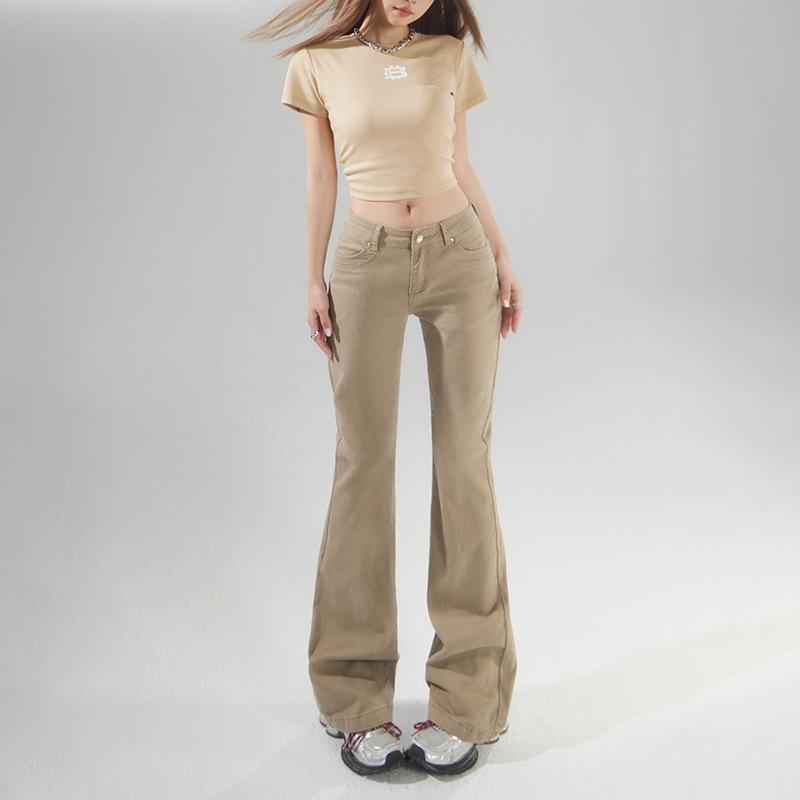 ジーンズ レディース ローライズ ブーツカット ストレッチ デニム パンツ カーキ 伸縮性 文芸復古 ジーパン ボトムス