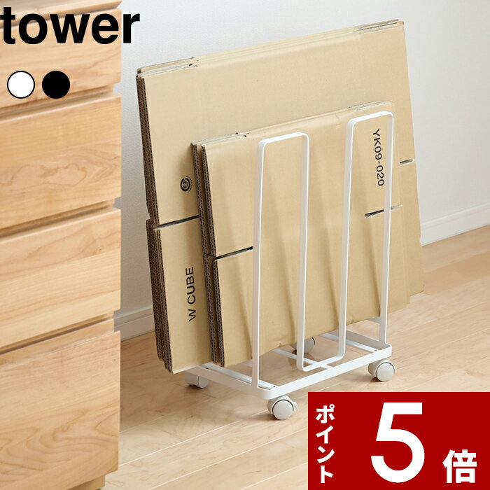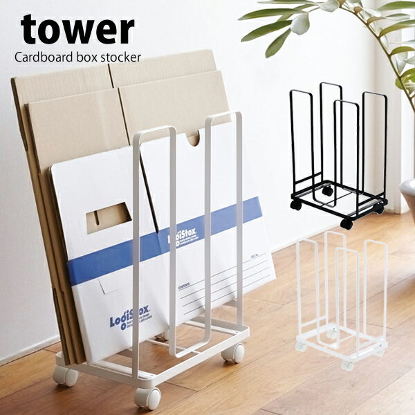 タワー tower キッチン 段ボール ストッカー ワゴン キャスター付 段ボール置き 段ボール立ておしゃれ 収納 一時置き場 オフィス ダンボールブラック ホワイト 黒 白 便利 山崎実業