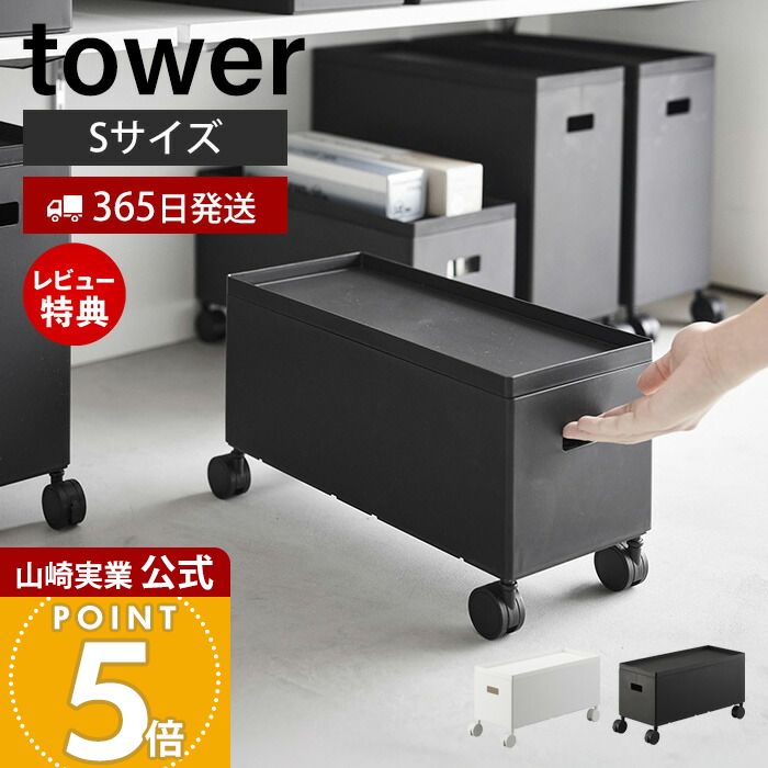 【365日出荷&当店限定特典付き】山崎実業 蓋付き収納ボックスワゴン タワー S tower 公式 収収納ケース ボックス ストッカー スタッキング 軽量 キャスター付き ふた 収納 整理整頓 プラスチック ホワイト ブラック 4554 4555