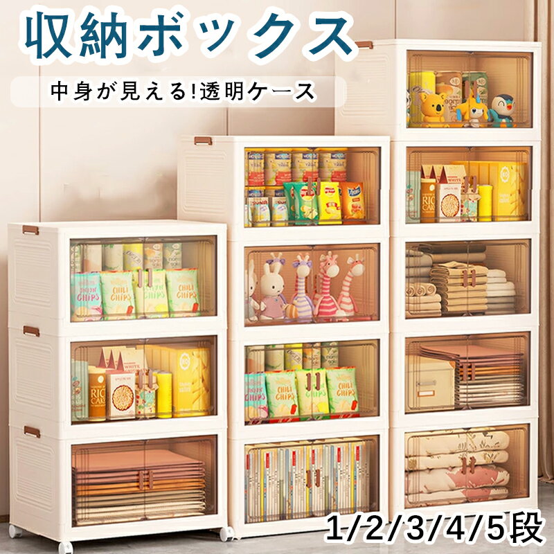 クリアワゴン 折りたたみ 小物入れ 透明 片扉も開き可能 キャスター付き 収納ケース 小物収納 新生児哺乳瓶保管ケース 大容量 収納棚 スリム 衣類収納 お菓子 化粧品 日用品雑貨 事務用品収納 キッチン 収納用品 整理整頓 1段 2段 3段 4段 5段