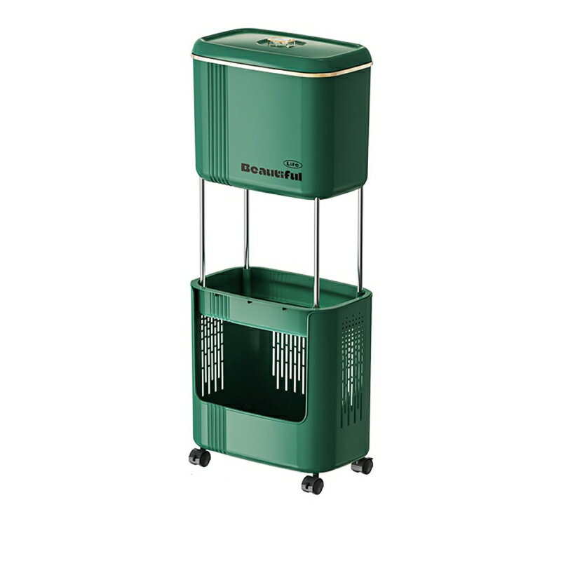 ◆◇◆売れている秘密◆◇◆ ★「材質」プラスチック「カラー」ホワイトグレーグリーン「サイズ」(cm)2段(2層):幅33.5×奥行20.5×高さ81cm ★縦型分類ワゴン:使いやすいゴミ箱&キッチンワゴン〜〜キッチンで使いやすいゴミ箱をイメージして設計されたゴミ箱。キッチンで出たゴミをそのまま捨てやすい。さらには2分別できるので、キッチンで出たゴミを分別しやすくなっています。 ★「切ったらそのまま捨てられる」高さのあるゴミ箱は珍しいですが、それにはちゃんと理由があります。調理台の近くに引き寄せて、そのまま生ゴミ入れに。臭いや汚れの原因となる三角コーナーも必要ありません。また、屈まなくても捨てられるのでご年配の方や主婦中の方に大変好評です。 ★「キャスター付きで移動便利」移動、固定に便利なロック付きキャスター採用。360°自由に回転することもでき、方向を柔軟に変更しますので、清掃もやすくなります。平らでない表面でもぐらぐら揺れませんので安心に使えます。 ★「様々な場所に対応」生活感を感じさせないモダンでおしゃれなデザイン。リビングや書斎、寝室、洗面所や脱衣室・ランドリースペースなどの水周りにもしっくりなじみます。隙間やデッドスペースに!スペースの有効活用にも!キッチンやリビング、ありがちな中途半端な空間や、置きたくても置けなかった場所にも! ◆◇◆注意事項◆◇◆ご覧のモニターの環境、撮影環境により実物と色味が異なって見える場合がございます。湿った状態で他のものと擦り合わせると色が移る恐れがあります。濃色品の洗濯時は、白色、淡色と分けて洗ってください。説明 「上段は仕切りのついた2分別式」★上段は2分別可能、上段は仕切りの付いた2分別式。ポリ袋止めも付いているので袋の安定感もバッチリ。シンプルながら実用性良い。「キッチンに最適な分類ワゴン」★上容器のゴミ箱の口は作業スペースとほぼ同じ高さにあるので、調理で出たたくさんのゴミもスムーズに捨てられます。★調理中に出るゴミをそのまま捨てやすい高さです。かがまなくてもゴミ捨てできるのでご年配の方や主婦中の方などにも使いやすくなっています。「キャスター付きで移動便利」★キャスターが付いていて移動もラクラク。欲しい所に自由に動かせます。<お客様のご都合による交換・返品の場合>商品到着後7日以内にメール・お電話にてご連絡をお願い致します。