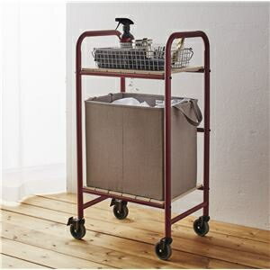ランドリーワゴンラック/洗面台収納 【幅47cm】 バスケット取出し可 キャスター付 ヴィンテージローズ 『アメリカンランドリー』【代引不可】 ds-2202205 ランドリーワゴン 洗面台収納 アメリカンランドリー 帆布バスケット 脱衣収納 重量7kg 耐荷重10kg 組立式 中国製