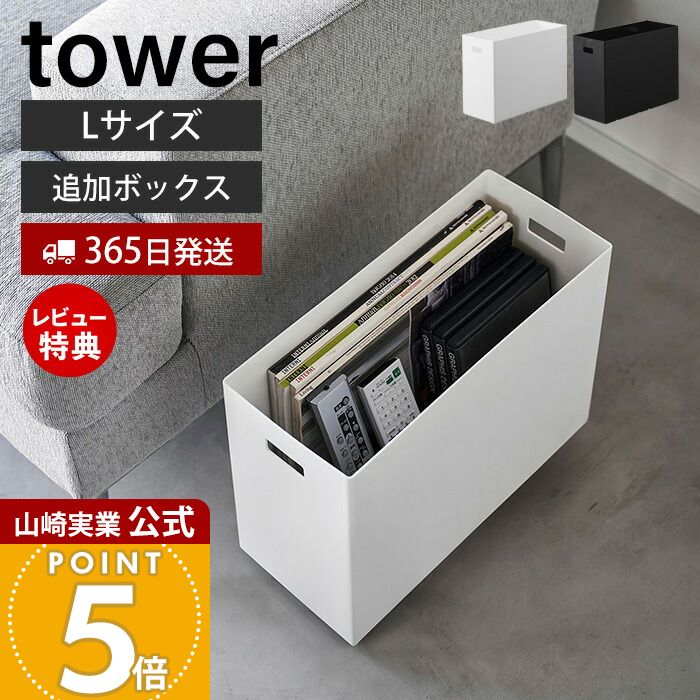 【365日出荷&当店限定特典付き】山崎実業 蓋付き収納ボックスワゴン用追加ボックス タワー L tower 公式 収納ケース ボックス ストッカー スタッキング 軽量 プラスチック 箱のみ 収納 整理整頓 ホワイト ブラック 1969 1970