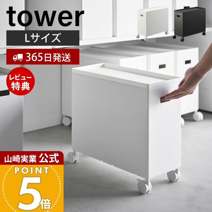 【365日出荷&当店限定特典付き】山崎実業 蓋付き収納ボックスワゴン タワー L tower 公式 収納ケース ボックス ストッカー スタッキング 軽量 キャスター付き ふた 収納 整理整頓 プラスチック ホワイト ブラック 4556 4557