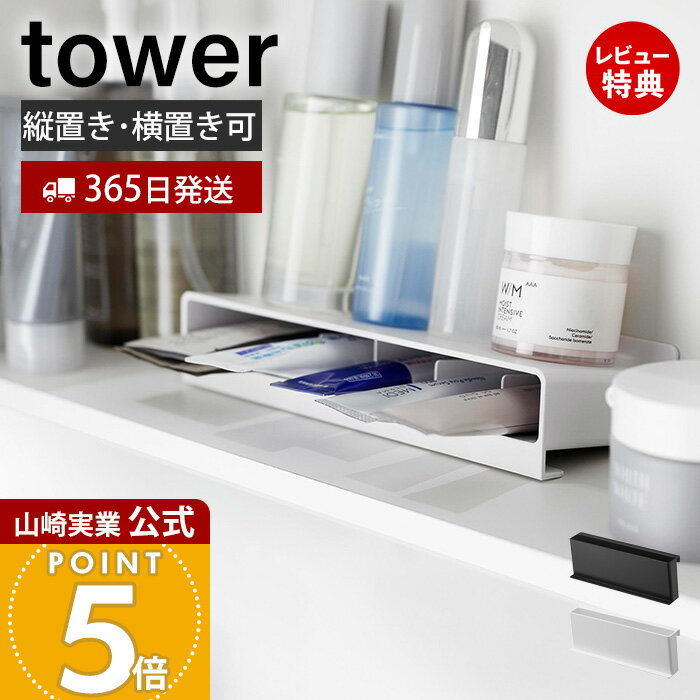 【365日出荷&当店限定特典付き】山崎実業 ミニチューブスタンド タワー tower 公式 縦置き 横置き 仕切り付き チューブ パウチ メイク用品 小物収納 洗面台 整理整頓 ワゴン ファイルボックス ホワイト ブラック 10383 10384