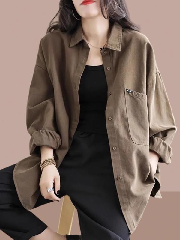 ・袖型: レギュラー袖・デザイン: ポケット・厚み: 中厚手・ネックライン: 襟付き・主な素材: ポリエステル90%以上、スパンデックス・柄: 無地・シルエット: ゆったり・加工: パッチワーク/異素材切り替え・着丈: ミドル丈 (65cm-80cm)・袖丈: 長袖・カラー展開: グレー、ブラック、ブルー、ピンク、ダスティイエロー、エメラルドグリーン・サイズ展開: S、M、L、XL、XXL、XXXL・スタイル: きれいめ通勤、リラックスカジュアル・前立て: 一つボタン・性別: レディース