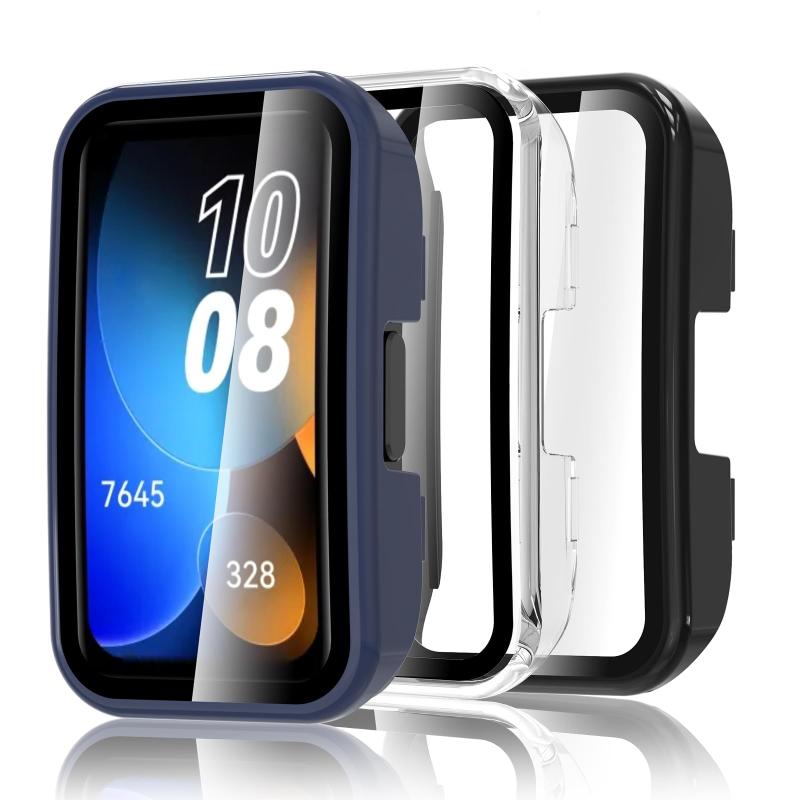 Bigqin【3枚入り】HUAWEI Band 10 / Band 9/ Band 8 対応 ケースと保護フィルム 一体型 全面保護カバー 極薄軽量 指紋防止 高透過率 擦り傷防止 取扱簡単 (PCフレーム+強化ガラス)
