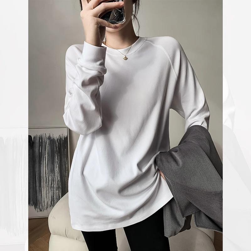 Tシャツ レディース 長袖 秋 トップス ゆったり 中丈 重ね着 無地 綿 カットソー インナー 接触冷感 吸湿速乾 体型カバー カジュアル・主な素材: 綿・素材(メイン): 綿90-95%・素材(サブ): スパンデックス30%以下・柄: 無地・スタイル: プルオーバー・袖丈: 長袖・製法: パッチワーク/縫い合わせ・フィット: ゆったり・着丈: ミドル丈(65-80cm)・ネックライン: ラウンドネック・袖のタイプ: ドロップショルダー・流行の要素: ショルダー・カラー: ホワイト(通常)、ホワイト(裏起毛)・サイズ: S, M, L, XL, XXL・スタイル: 通勤・製品カテゴリ: Tシャツ