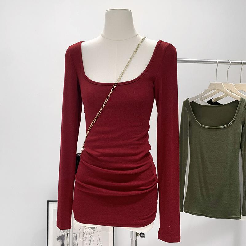 ・主な素材: アクリル・その他素材: スパンデックス、ビスコース・柄: 無地・スタイル: その他・袖丈: 長袖・商品種類: Tシャツ・フィット: スリム・着丈: ミドル丈 (65cmより長く80cm以下)・ネックライン: スクエアネック・袖のタイプ: レギュラー・カラー: オフホワイト、ダークグレー、レッド、グリーン、ブラック・サイズ: S、M、L、XL・スタイル: 韓国風カジュアル・主な素材の含有量: 70%-80%・その他素材の含有量: 30%以下・テイスト: 韓国