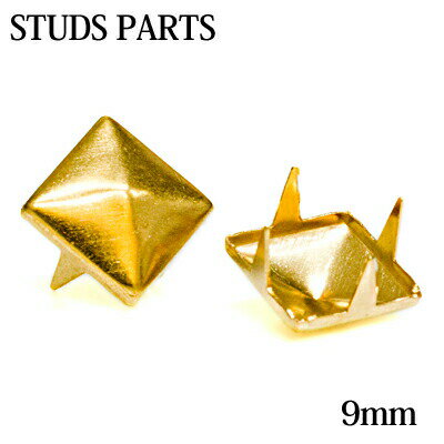 【宅配便送料無料】20個入り 挿し込み式スタッズ 9mmスクエア / クラフト レザークラフト 金具 パーツ 四角 四角形 挿し込む 皮製品 かっこいい 爪折り 4つ爪 ゴールド