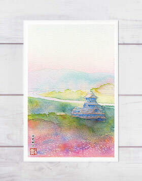 伏見桃山 ( 伏見城 宇治川 桜 京都 和風 水彩画 風景画 ) ★当店オリジナル★