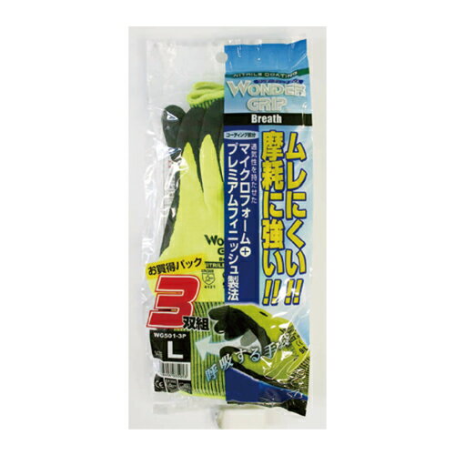 納期について:【取寄】通常3〜5日の発送予定(土日祝除く) 【手袋 ガーデニング 庭 グローブ 農作業 園芸用 ガーデニング ガーデン ツール 用品 家庭菜園】 ■ニトリルゴムコーティング ●ニトリル手袋 ニトリルは耐摩擦性と耐油性に優れています。 ワンダーグリップはそんなニトリルの利点だけではなく、全体的にオイルグリップ力も強化しています。 ●テクノロジー ワンダーグリップは、タコの吸盤によく似た吸引効果の、特殊なコーティングを施しております。 ●スベリ止め効果 オイルコンディションでの滑り止め効果は、一般的なニトリル手袋0.45に対し、ワンダーグリップは0.61 仕様 メーカー ユニワールド 品名 手袋 WG ブレス 3双組 蛍光イエロー Lサイズ 品番 WG501-3P JANコード 4518406035053 カラー 蛍光イエロー サイズ L 素材 (手袋繊維)ポリエステル、(コーティング部分)ニトリルゴム水性PU ※こちらの商品は代金引換でのご注文はお受けできませんのでご注意ください。 ※メール便での配達となるため、お届けはポストへの投函となります。あらかじめご了承ください。 【送料での注意】送料別の商品と送料込の商品をご一緒に注文頂いても、送料込とはなりませんのでご注意ください。(※合計金額が税別10,000円以上は除く)※こちらの商品は代金引換でのご注文はお受けできませんのでご注意ください。※メール便での配達となるため、お届けはポストへの投函となります。あらかじめご了承ください。