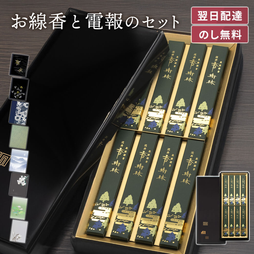 贈答用 線香 玉初堂 「沈香 香樹林」 電報セット 送料無料 塗箱 進物用 お線香 ギフト 熨斗無料 のし対応 電報 弔電 メッセージ 文例 葬儀 葬式 通夜 告別式 法要 法事 家族葬 お悔やみ 訃報 お供え 一周忌 お彼岸 喪中見舞い 喪中はがきが届いたら 即日発送 翌日配達