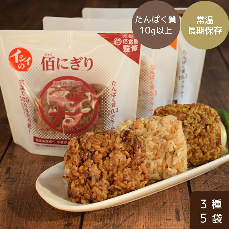 【送料無料|常温】【公式】石井食品 イシイの佰にぎり 3種×5袋| 佰食屋 携帯おにぎり たんぱく質 百にぎり 百食屋 備蓄 保存食 おいしい非常食 無添加 ご飯 常備 保存食 イシイ食品