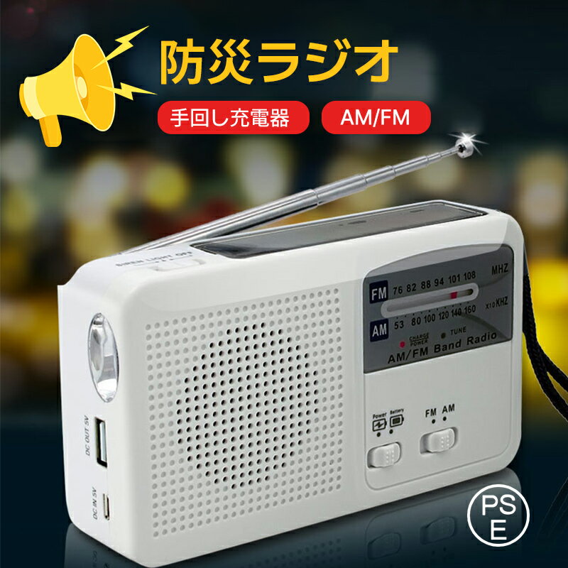 メーカー希望小売価格はメーカーサイトに基づいて掲載しています FM/AM/防災ラジオ 信号受信:AM 520-1710Khz / FM 76-90Mhz。 防水性:IPX-3 台風、津波、地震、停電など災害を防ぐための緊急対策ラジオです。このラジオライトは、停電、電気通信の不安定または中断された場合に、外界からの災害情報を収集可能。緊急時、救援者は迅速に位置を特定する可能。 高輝度懐中電灯 高輝度3つのLEDライトを内蔵された充電式ライト、備えておくと安心なライトです。 外装全体は明るくの赤、光不足の場合も目に立ちます。 モバイルバッテリー 2000mahバッテリーを内蔵され、モバイルバッテリーとしても使用可能。緊急時に携帯電話などUSBグッズに携帯充電器などとして充電可能。 3つの充電方法 手回し充電手回しラジオ:製品の背面にあるハンドルを回すと充電可能。ソーラー充電ラジオライト:ソーラーパネルを日差しの方向に向けると、自動的に充電可能 USBケーブルで充電:付属しているUSBケーブルでUSBポートから充電可能 小型・超軽量 12.8cm * 6cm * 4.5cm 重量200g!緊急時に持ち運びやすく、収納しやすい。 完全防水ではないので、水に浸すことはいけません新規お友だち登録で 今すぐ使えるクーポン※上記のクーポンと併用不可 店舗内全商品対象 5%OFF ↓ ↓ ↓ ↓ ↓