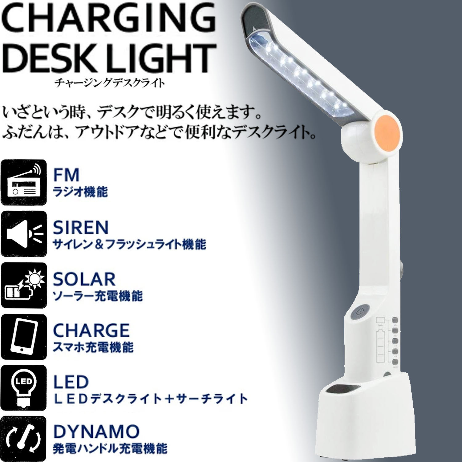 チャージングデスクライト ソーラー&手回し発電・スマホ充電 手回し充電器 災害 防災 防災グッズ ライト デスク アウトドア ソーラー チャージ ラジオ 手回しラジオ 便利 LED 発電 バッテリー