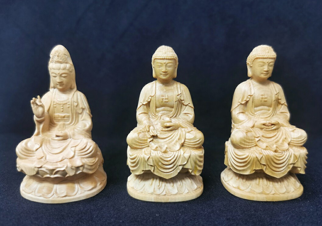 舞龍堂 仏像 座像 黄楊 天然ツゲ 「聖観音像」「薬師如来像」「釈迦如来像」 木彫り