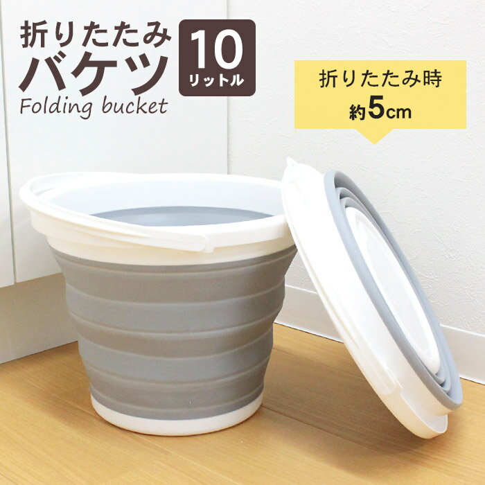 \P10倍+10%OFFクーポン/バケツ 折りたたみ シリコン 10L 大容量 丸型 グレー | 持ち手付き 折りたたみバケツ 折り畳み モノトーン ソフトバケツ 洗い桶 かわいい おしゃれ コンパクトに収納 洗濯 掃除 洗車 釣り アウトドア キャンプ 植木水やり 便利グッズ 大掃除 掃除