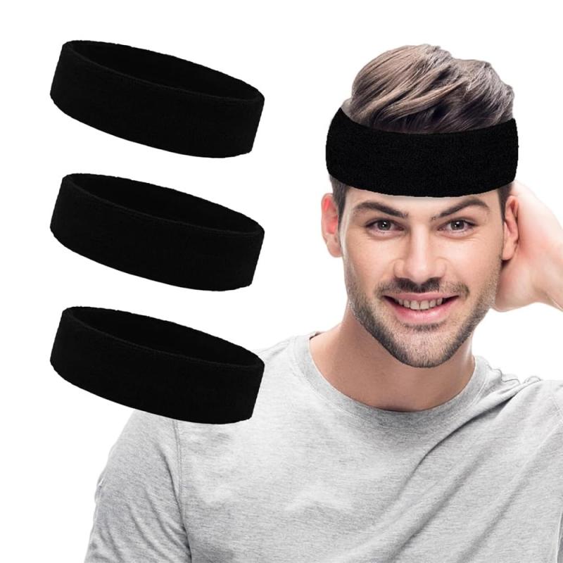 ヘアバンド メンズ レディース ヘッドバンド【吸汗通気 汗止め 高弾力】厚手 コットン素材 抗菌防臭 肌触りが柔らかい ヘアターバン スポーツ用 洗顔用 ダンス ヨガ ジョギング 男女兼用 3枚セット (ブラック+ブラック+ネイビー)