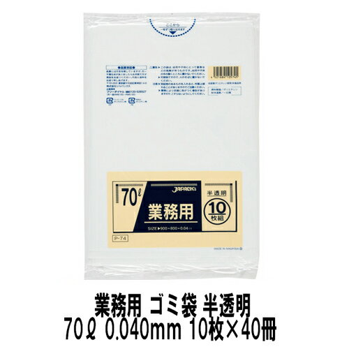 ジャパックス【引っ張りに強く強度も抜群】ごみ袋 70リットル 0.04mm 半透明 10枚x40冊業務用 ケース 箱売り P-74