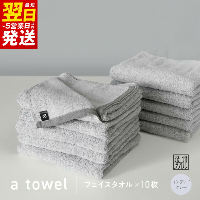 【ふるさと納税】【数量限定】a towel フェイスタオル 10枚セット インディゴグレー 速乾 吸水力 日常使い 日本製 泉州タオル 綿100% 最短 翌日発送 5営業日 送料無料 泉佐野市 防災グッズ