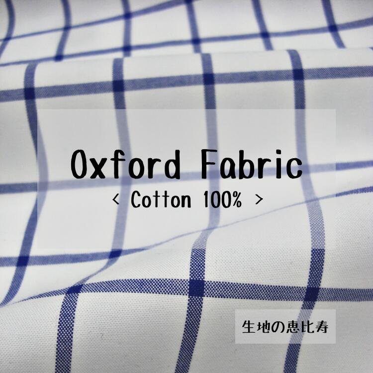 生地 チェック ウインドウペン オックスフォード シャツ ブルー・ネイビー 綿100%