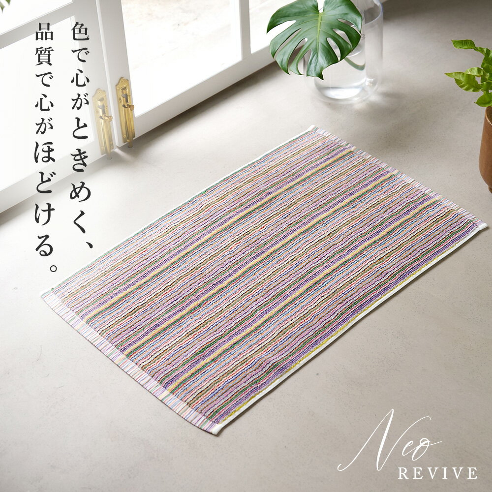 今治産バスマット プチバスマット ネオ・リバイブ 七福タオル 残糸 ギフト 残り糸 ストライプ 耐久 厚手 吸水 環境配慮 自然にやさしい Eco エコ SDGs 贈り物 プレゼント 風呂 サウナ 日本製 国産 綿100%