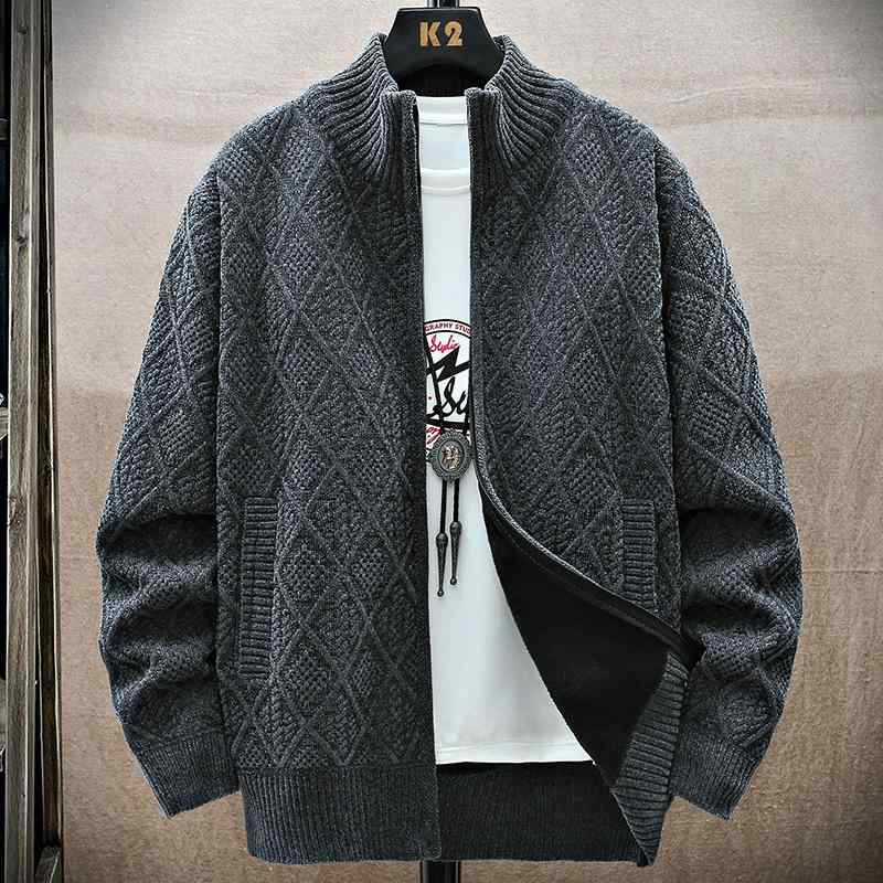 ニット メンズ 秋冬 カジュアル ニットカーディガン ジャケット アウター 立ち襟 暖かい 裏起毛 羽織り