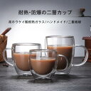 保温・保冷両用350ml/500ml の二重構造ガラスカップ 100%高硼珪酸耐熱ガラス製 平底で持ち手付き オフィス・家庭用 ギフトにも最適