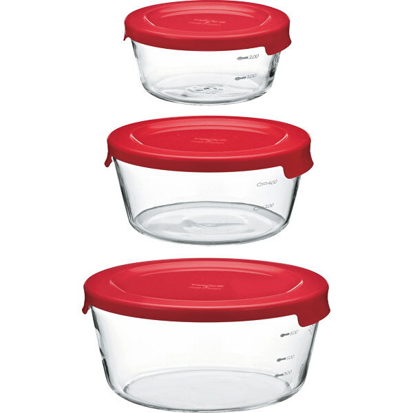 ハリオ 耐熱ガラス製保存容器 丸3個セット レッド MSTー3018-R