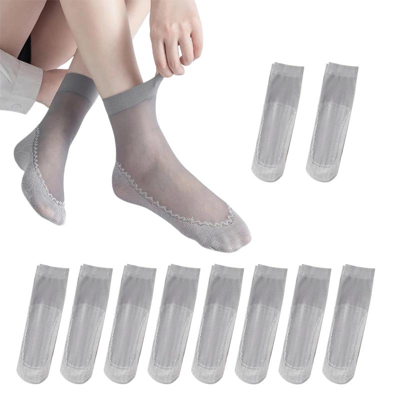 [UrbanPulse] シースルーソックス レディース 薄手 透け感 通気性 滑り止め付き脱げにくい 素足感覚 蒸れない 夏用 シースルー靴下 10足セット1.【通気性抜群のシースルーソックス】透明なシースルー素材は通気性に優れ、足を乾燥させて臭いを軽減します。素足のような感覚で快適に過ごせ、日常使いはもちろん、長時間の外出やアクティブなシーンにも最適です。10足セットで、毎日の使用に便利なアイテムです。2.【高品質ナイロン素材】 シースルーソックスは、耐摩耗性に優れた高品質ナイロン素材で作られており、引っかかりにくく、長期間使用しても劣化しにくいです。3.【コットン底滑り止めストッキング】コットン底の滑り止めで通気性と吸汗性が向上し、汗をしっかり吸収して足を快適で柔らかく保ち、臭いを軽減します。摩擦から肌を守り、夏にぴったりの薄手で涼しいオールマッチストッキングです。4.【優れたフィット感】足首にしっかりフィットする設計で、ズレ落ちを防止します。どんな動きにも対応し、長時間でも快適に着用できます。デザインはシンプルで、目立たず自然に足元に溶け込みます。5.【多用途デザイン】カジュアルシューズからパンプス、サンダル、スニーカーまで、あらゆる靴に合わせやすいデザインです。薄手で軽やかな着心地なので、シーズンを問わず年中使えるアイテムです。