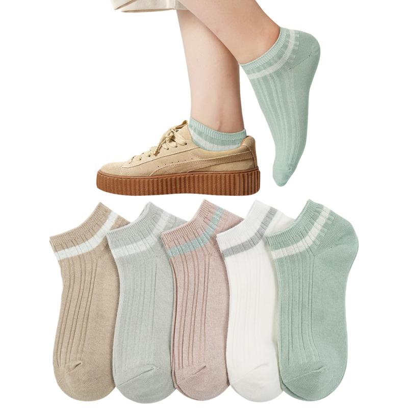 [GOWAAW] 靴下 レディースソックス アンクルソックス くるぶし 5足セット 綿 薄手 吸湿 脱げにくい 通気 吸汗 おしゃれ スポーツ 女性 夏用 22-24cm
