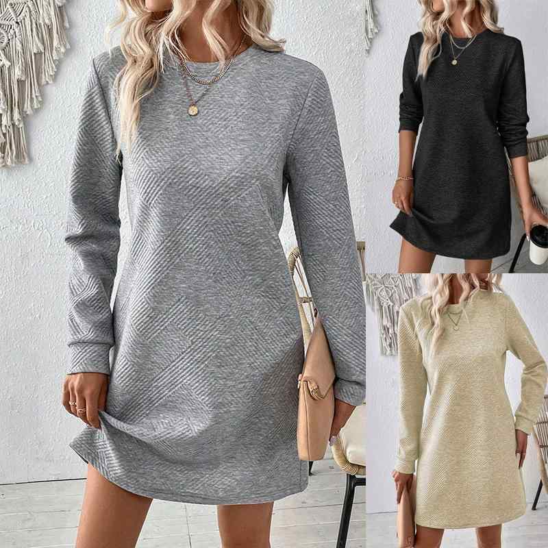 ワンピース レディース 秋冬 長袖 ミニワンピース チュニック Aライン 膝上丈 プリンセスライン 無地 ゆったり ラウンドネック ドロップショルダー カジュアル 韓国風 かわいい グレー ブラック ベージュ ポリエステル