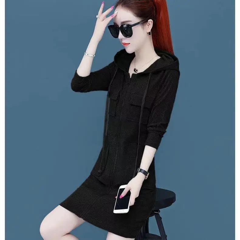 ワンピース レディース 春秋 長袖 小柄 Aライン 膝上 ミニワンピース パーカー付き カジュアル ゆったり 高見え ポケット付き 着痩せ効果 コットン グレー ブラック ホワイト