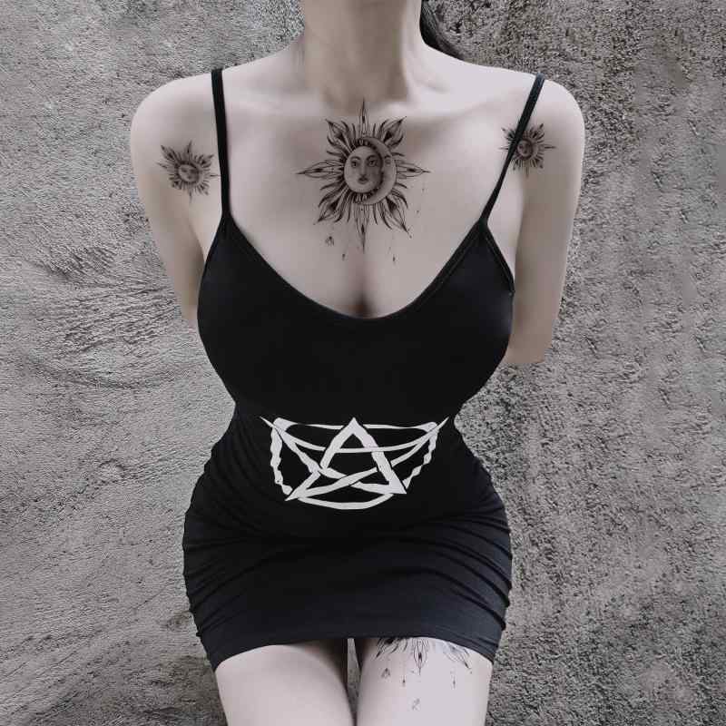 ワンピース レディース 夏 キャミソール Uネック ミニ丈 膝上 タイト スリム ノースリーブ コットン混紡 プリント柄 ストリート カジュアル ブラック