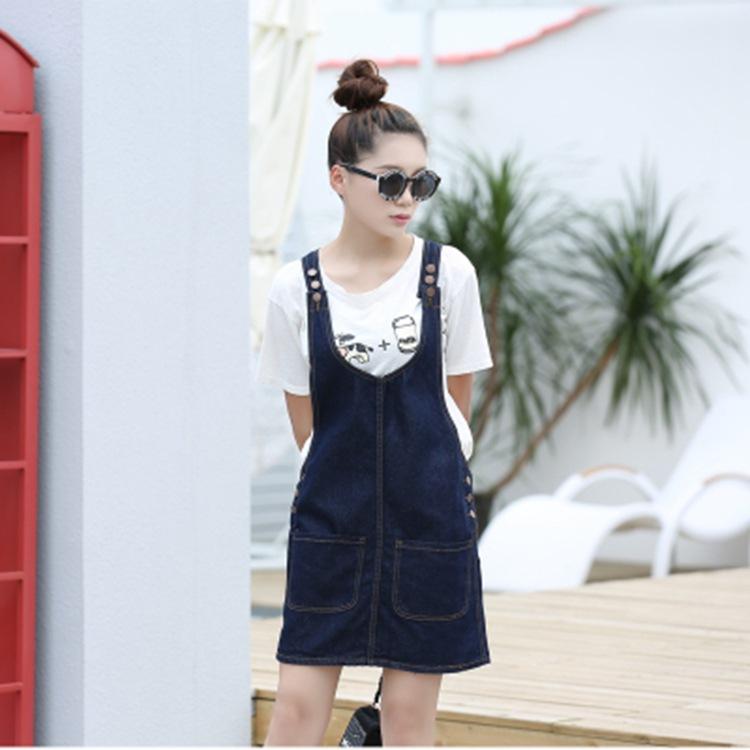 ワンピース レディース デニム ジャンパースカート 膝上丈 コットン ゆったり Aライン 無地 ノースリーブ 深青 通勤 カジュアル かわいい[{"output":"・工艺: 拼接・裙长: 短裙・裙型: 一步裙・领型: 一字领・袖丈: ノースリーブ・腰型: ゆったり・流行要素: 拼接・主な素材: 綿・カラー: 深藍・サイズ: S, M, L, XL, XXL, XXXL, 加大XXXL・・裙类别: ワンピース"}]